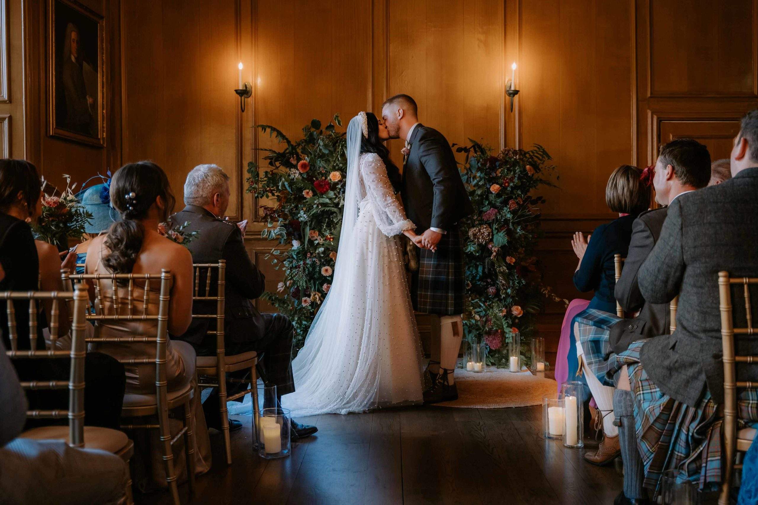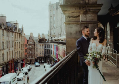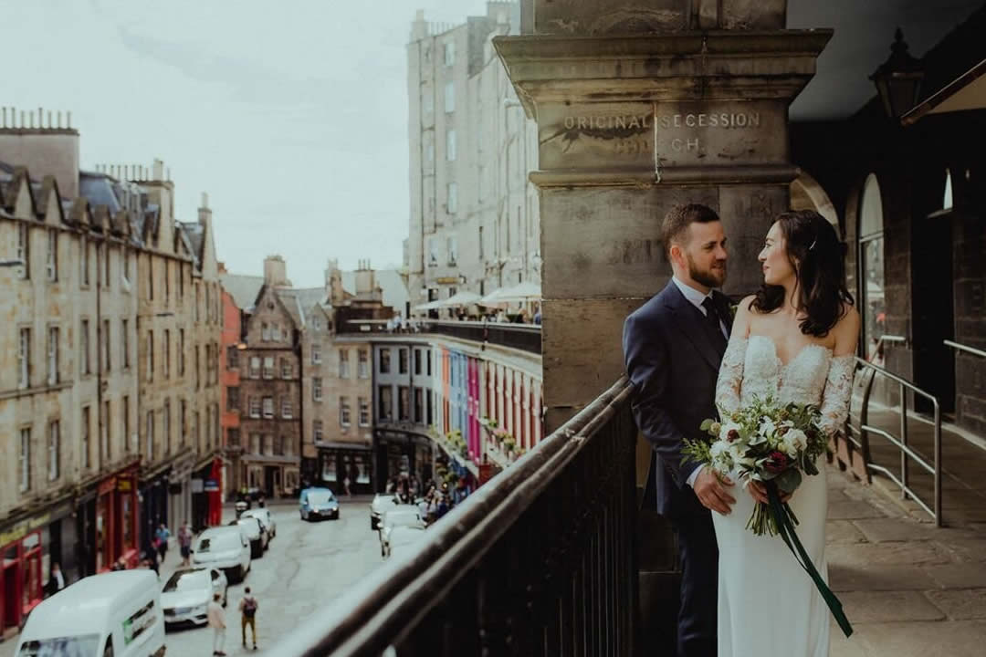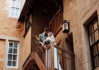 A unique historic gem in the heart of the capital’s Royal Mile, Riddle’s Court is the ideal setting for a memorable wedding. With beautiful 16th Century painted ceilings, elegant rooms and romantic courtyards, it is personal, intimate, charming and full of exquisite period detail. The historic rooms are the perfect choice for ceremonies, receptions, wedding breakfasts and even ceilidhs. The King’s Chamber, our onsite 16th century apartment, is an ideal honeymoon suite for newlyweds. From the moment you enter from the Royal Mile, the venue exudes character and charm with a peaceful and relaxing atmosphere away from the bustle of city life. Enjoy a taste of history while celebrating in a building that has hosted kings, dukes and philosophers, writers and actors, and many others from Edinburgh’s rich and colourful past. Only a short walk from Edinburgh Castle, St Giles Cathedral and the Royal Mile Registry Office, we are perfectly positioned in the Old Town with lots of options for hotels and accommodation nearby. Riddle’s Court in conserved by the Scottish Historic Buildings Trust and when you book your wedding at Riddle’s Court, all the profit goes back into our charitable mission of restoring and renovating beautiful historic buildings. Our experienced team will work with you to bring your ideas to life, creating the style and atmosphere that is right for you.